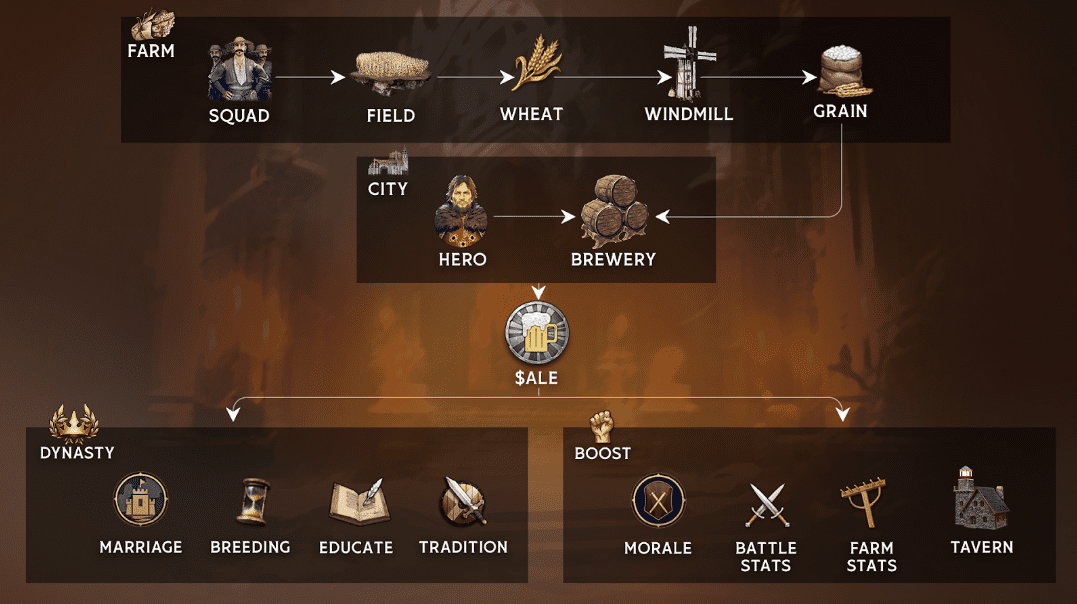 ALE是一种不可或缺的资源,是BLOCKLORDS经济的核心动力。这种宝贵的资产在创新的王朝系统中发挥着核心作用,通过酿酒师精心加工粮食而产生。ALE的使用场景仅在游戏中。