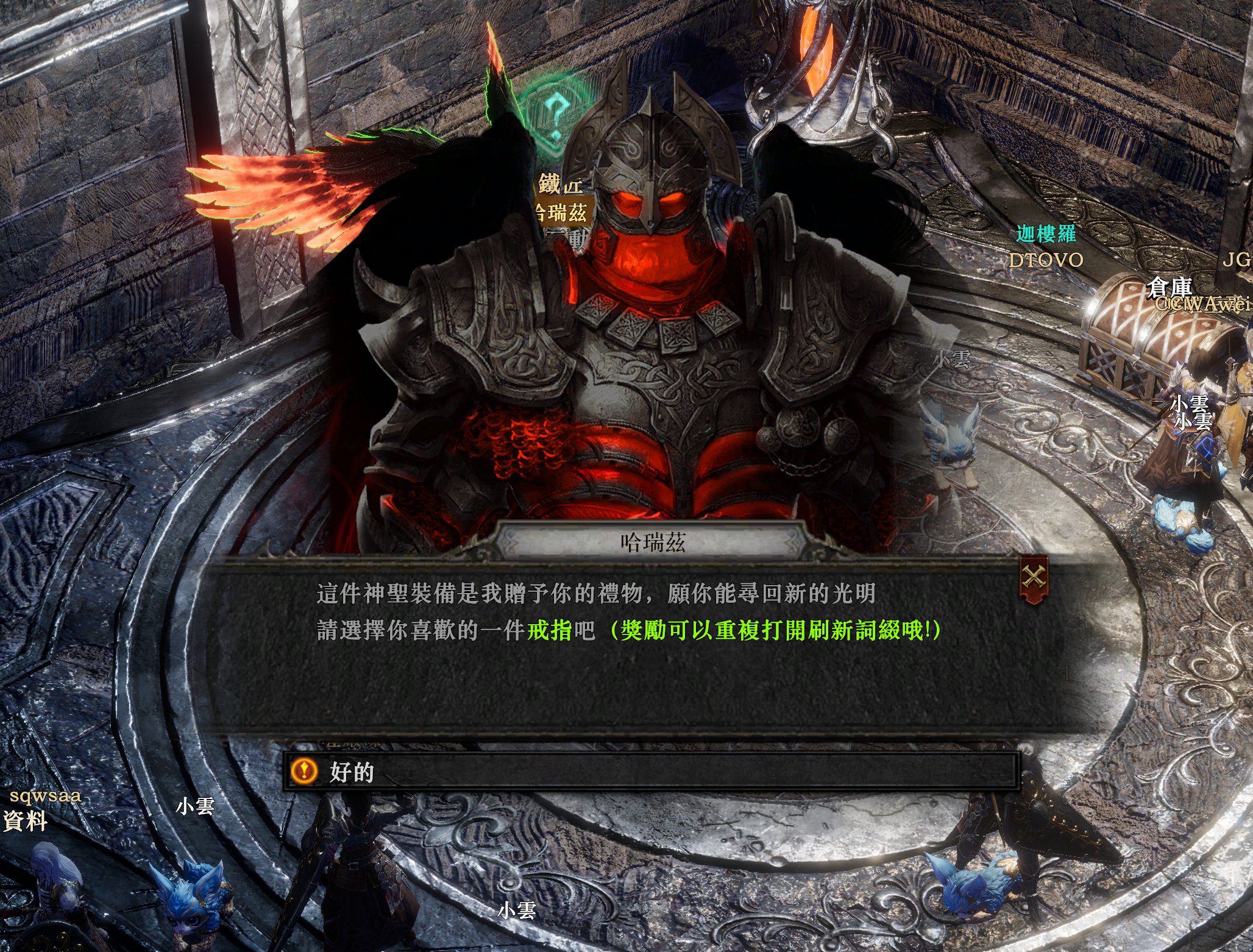 2.找铁匠领取装备,在抵达虚影之岬后,可以找铁匠领取一套60级装备(直升60级的有,不确定自己过主线升级的有没有),这里的装备基本比副本打的好不少,且可以通过不断关闭打开刷词缀,是前期过度的不错装备。
