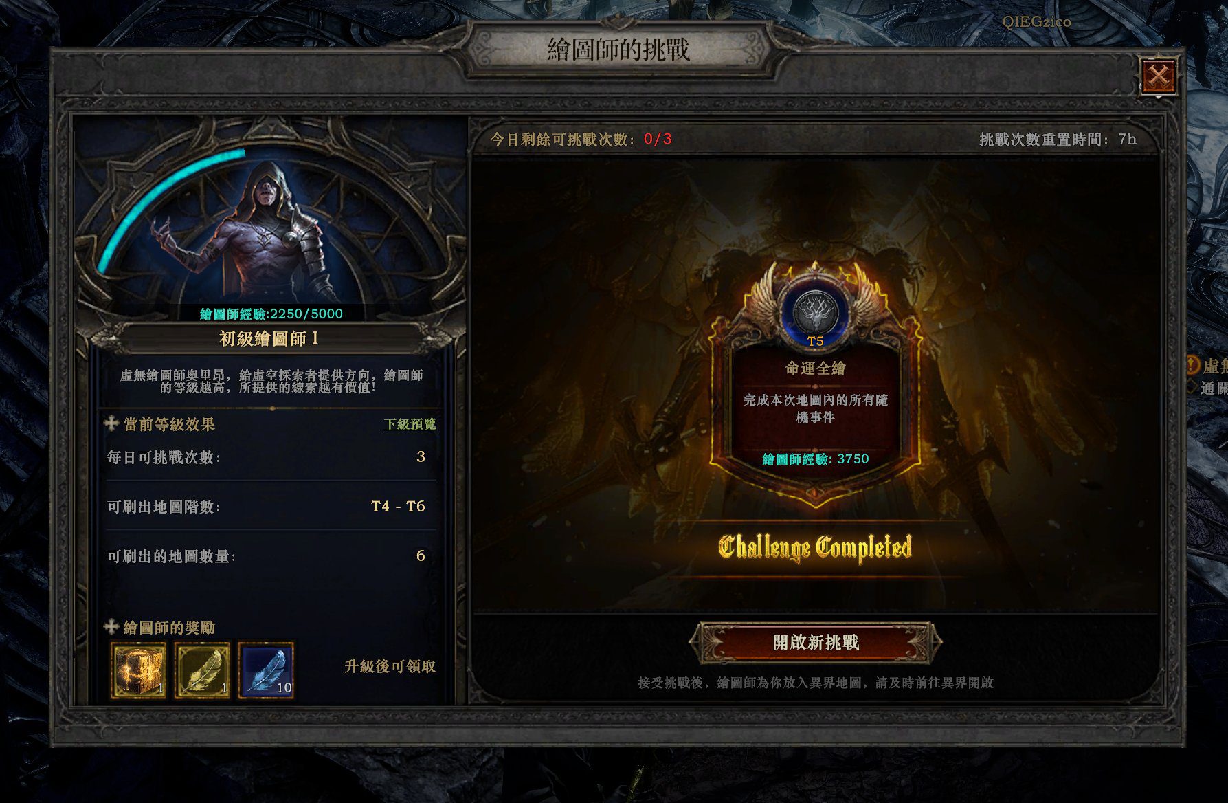 5.每天3次绘图师挑战建议做,这个挑战相当于每天官方给你送6张地图(挑战本身3张,奖励3张),而且这个挑战可以不断升级,不断获得更高的地图,挑战任务找绘图师接即可。
