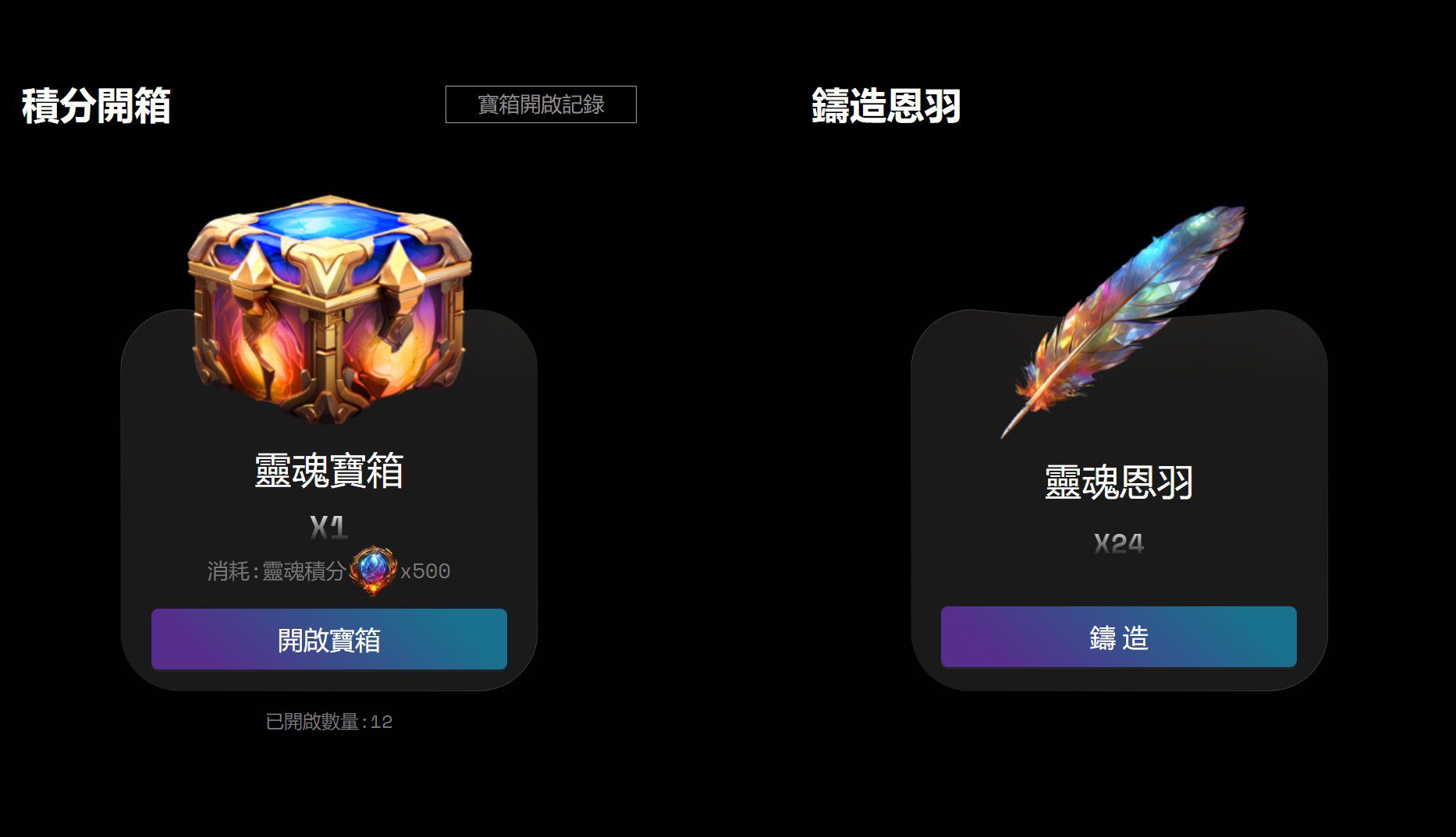 3.PFP/SPP持有者-必做。本次有个针对PFP/SPP持有者的活动-持有者的赠礼,可以不要玩游戏,每天空投灵魂积分,然后你可以使用灵魂积分开箱子,直接开出后续可兑换10枚代币/根的灵魂羽毛。