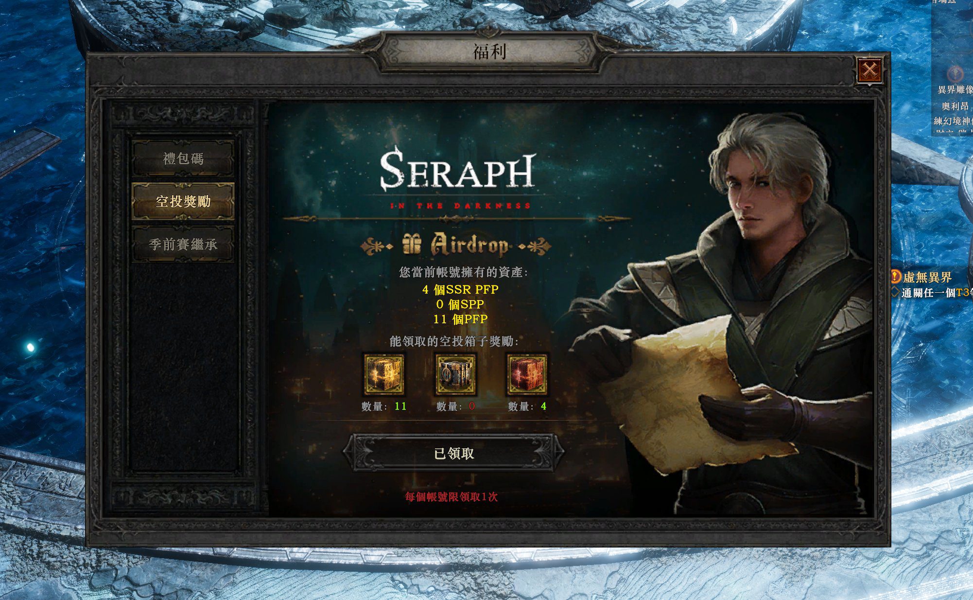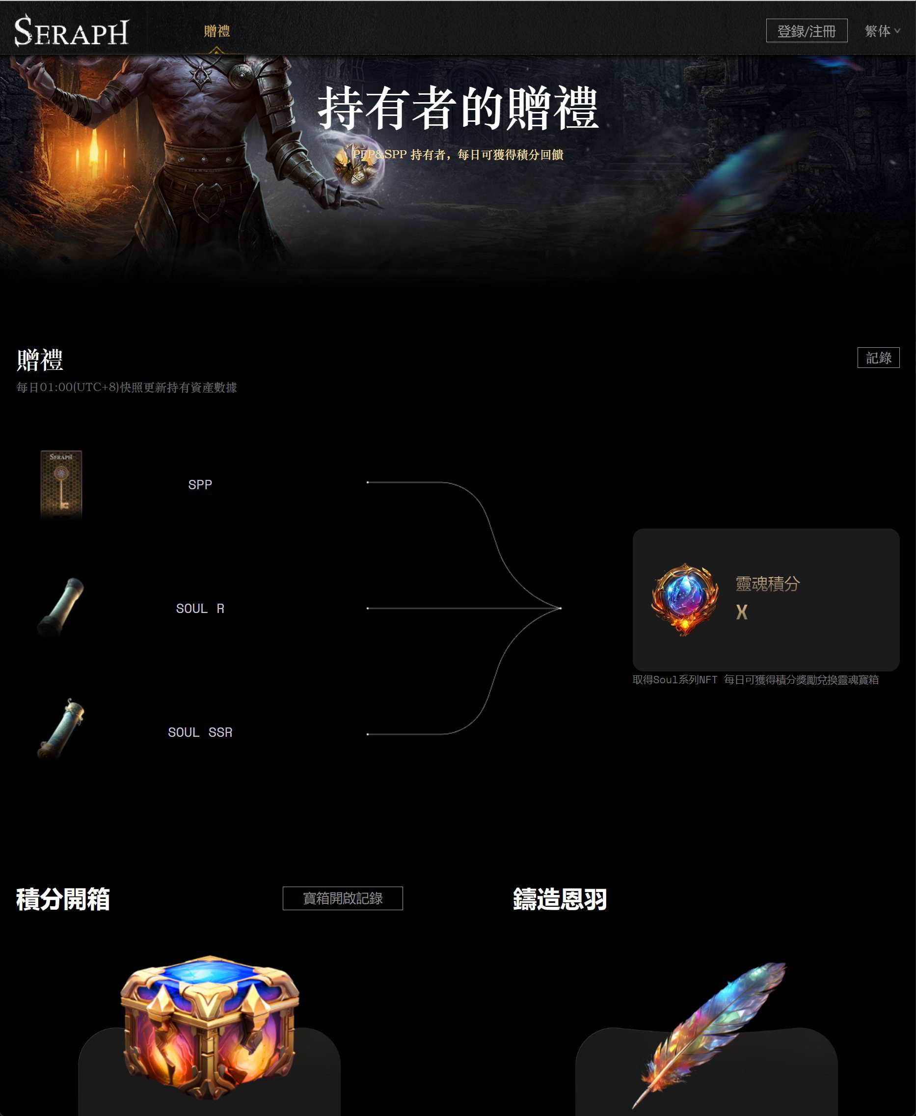 1.持有者赠礼,就是上面说的针对PFP/SPP持有者的活动,属于持有者必做又最轻松的一个活动,只需去官网完成账号绑定后每天开箱子即可,入口 holder.seraph.game/home