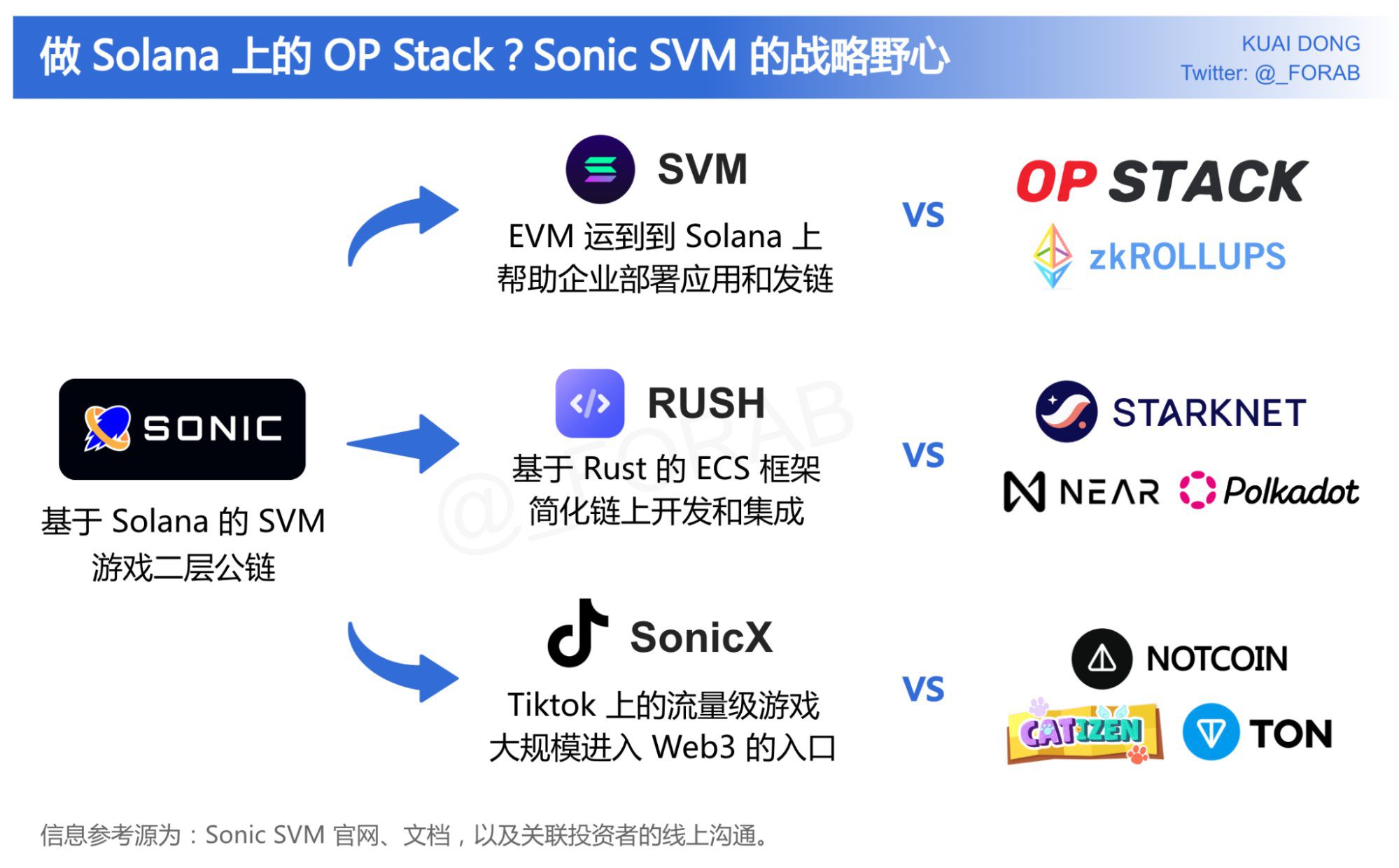 所以,Sonic 目前做的事情,不单单是游戏链,而是做了以太坊 OP Stack 的活,即降低开发者进入 Solana 的门槛,同时帮助企业,发布自己的 Solana 应用链。