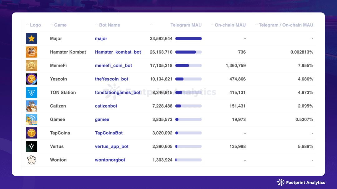 数据来源:热门 Telegram 游戏 MAU 及其对应 TON 链上 MAU